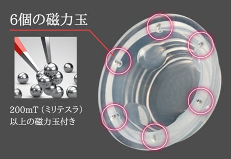 ・200mT(ミリテスラ)の磁力を持つ6つの磁力玉が、皮膚に接するように内蔵されています。