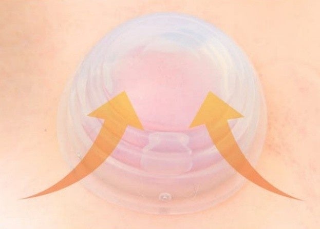 吸盤構造により生まれる陰圧(吸玉効果)により皮膚に密着して、皮膚や筋肉を刺激します。