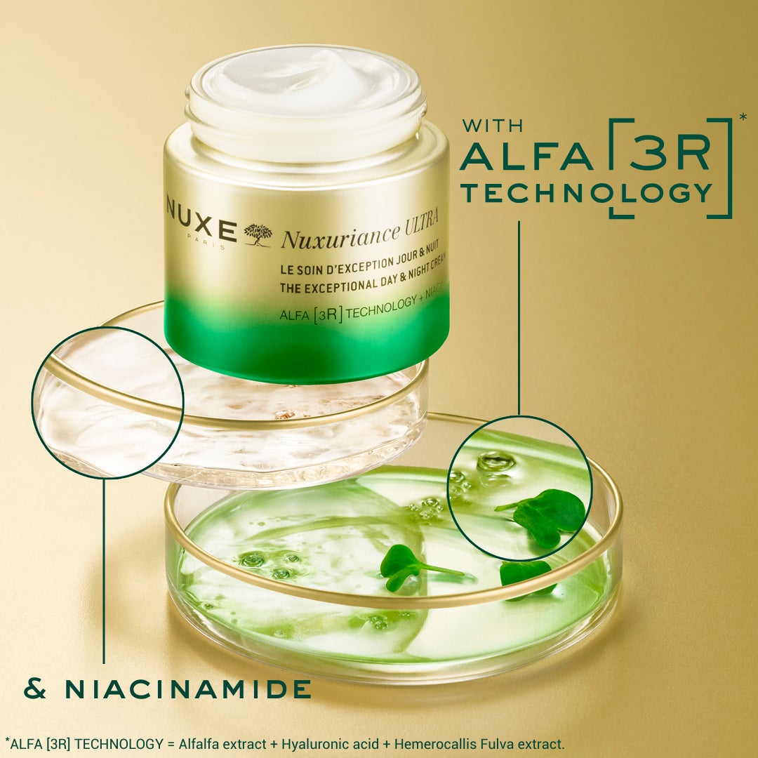 レチノールとは異なるアプローチから生まれた、ブランド史上最も優れたエイジングケア*¹成分 「アルファ3Rテクノロジー*²」配合のニュクスリアンス。 さらに、ナイアシンアミド*³を配合、ハリ・ツヤ・キメにアプローチしながら、 弾むようななめらか肌へ導く「ニュクスリアンス EX デイ&ナイト クリーム」が仲間入り。 これひとつで朝晩のケアを兼ねる、あらゆる肌質に合うユニバーサルでメルティングなテクスチャーも特長的。オレンジブロッサムやラズベリー、サンダルウッドの現代的で洗練された女性らしい香りとともに、昼夜を問わずトータルなエイジングケア*¹を叶え、忙しい中でのお手入れの時間を癒しのひとときに。