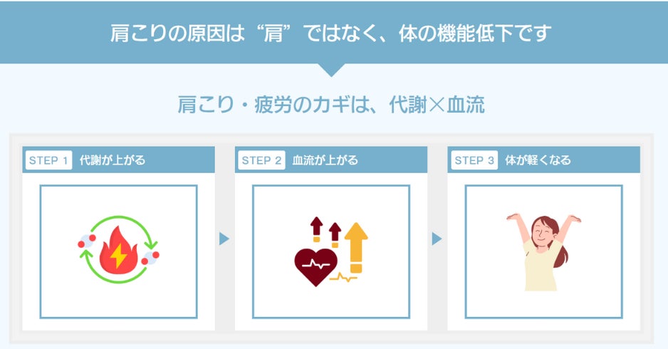 肩こり・疲労回復のカギは、「代謝 × 血流」