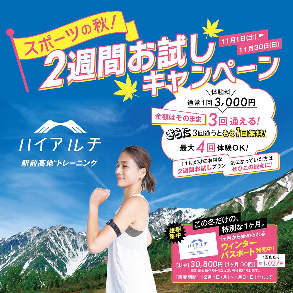 現在、全国のハイアルチスタジオでは「2週間お試しキャンペーン」を開催中。