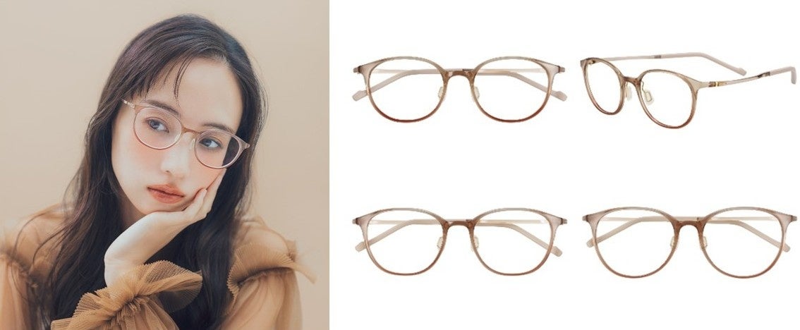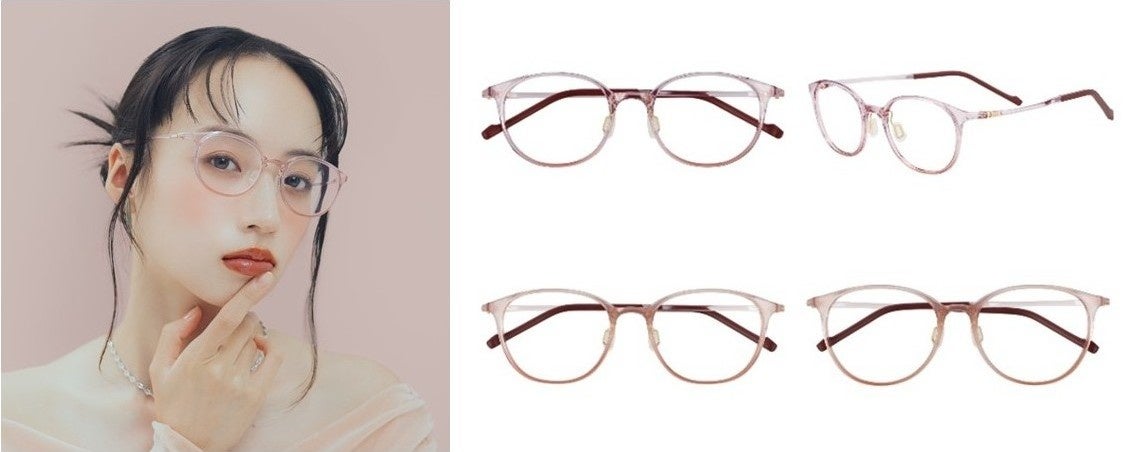 「メガネとメイクでつくる、目もとぱっちり多幸感フェイス」をテーマに、資生堂ヘアメイクアップアーティストのノウハウを取り入れて企画された、メイクとアイウェアを融合させた3色、各色ともボストン型の、ジャストフィット、レギュラーフィット、ワイドフィットの3型展開の全9種のラインアップです。