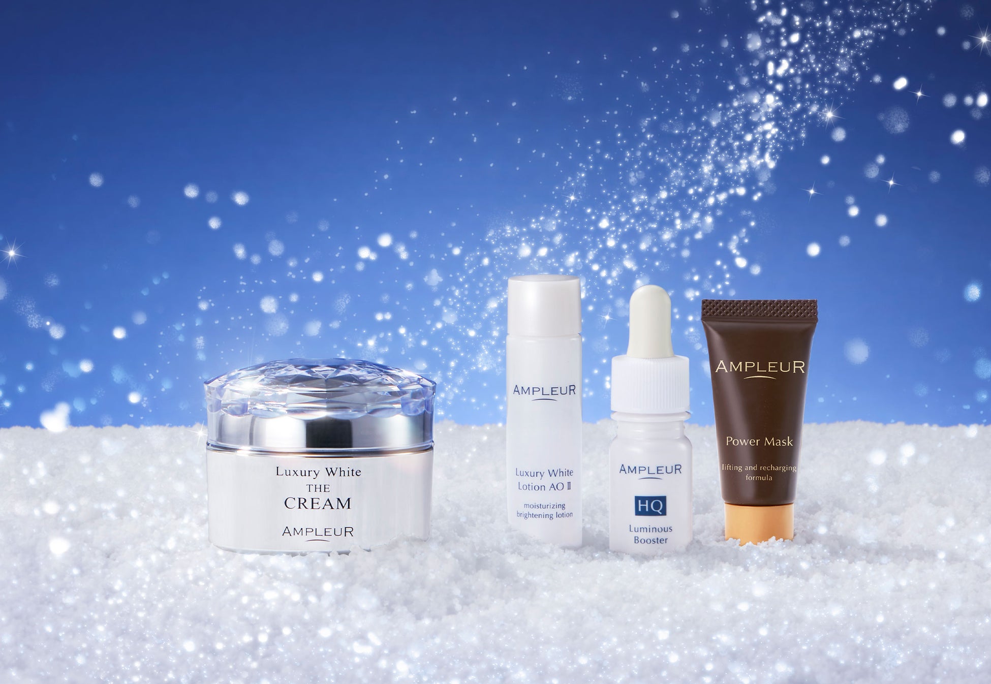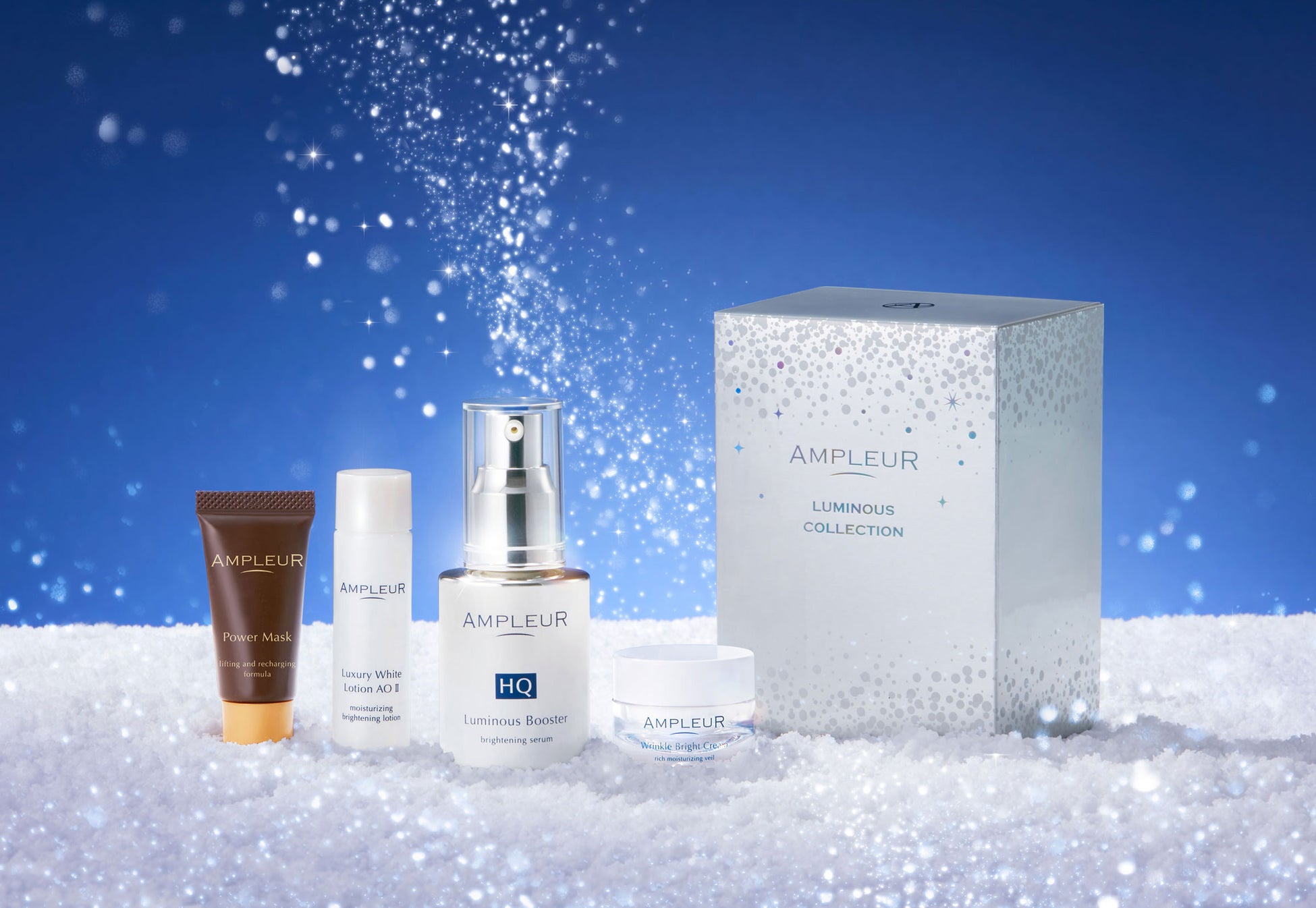 注目は、ベストコスメ受賞の導入美容液「ルミナスHQブースター」の現品をメインに据えた「アンプルール ルミナスコレクション」。冬に気になるくすみ*¹や乾燥、そしてエイジングサインにトータルアプローチする豪華なラインナップを、特別なセットにしてご提供いたします。輝く雪の結晶をイメージした特別なパッケージは、1年間頑張ったご自身へのご褒美や、大切な方へのギフトにも最適です。