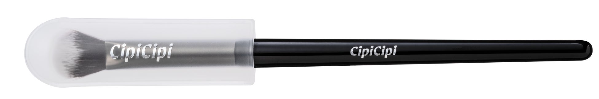 猫の手のような、丸く斜めにそろえられたブラシ形状が、小鼻横のくぼみやクマにフィットするこだわりの形状。「シピシピ ヒアルマットハイライター」をテクニックいらずで必要な部位にだけぴったり塗布。