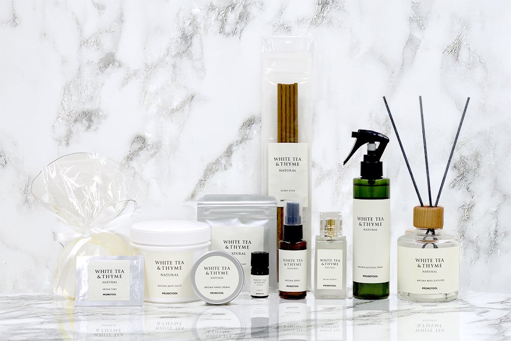 当社は、香りによる空間演出から関連グッズ開発までワンストップで提案できる体制を強みとしています。