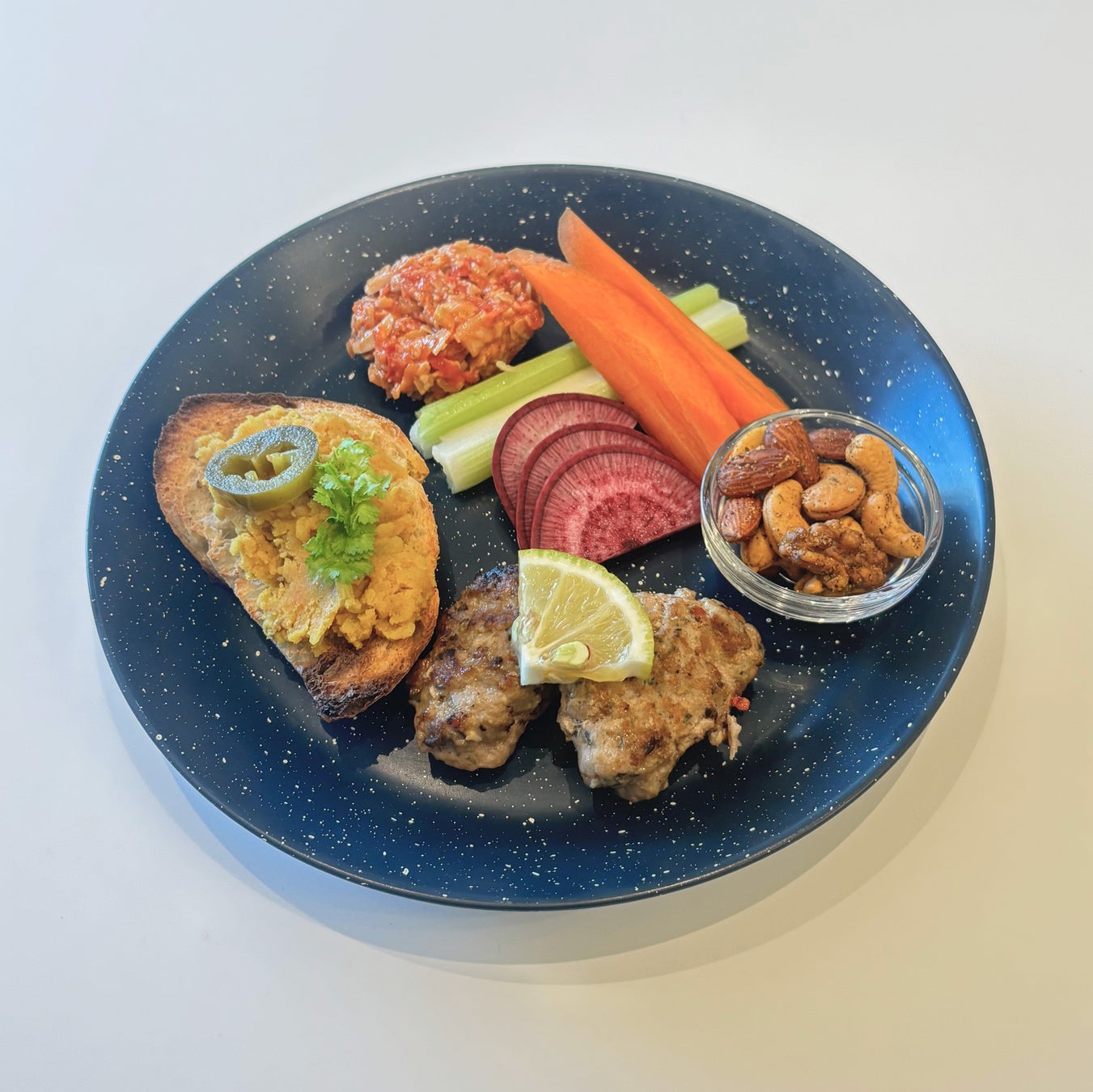 ドリンクはナチュールワイン(赤・白・ロゼ・オレンジ)とクラフトビール、ハイボール、ホットワインに加えて、ホットスパイスレモネードからお選びいただけ、4種類のデリプレート付き。