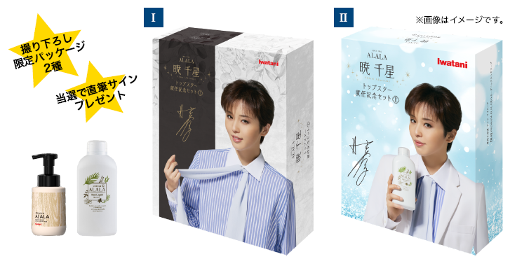 暁 千星さんの星組トップスター就任を記念した特別賞!下記の対象商品ご購入で、S席チケットと暁 千星さんの直筆サイン色紙を抽選でプレゼントします。