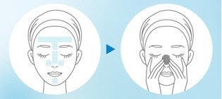 ●顔が軽くぬれている状態で、適量(直径約2cm)を手にとり、鼻や眉間、額、あごなどの毛穴汚れが気になる部分にのせます。