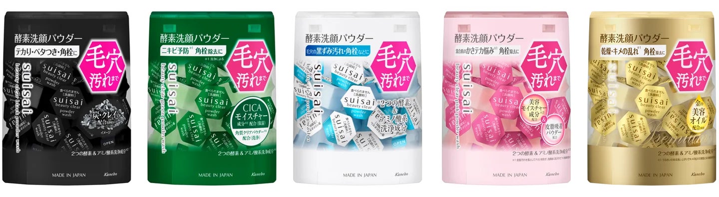 「suisai(スイサイ)」は、今年誕生20周年を迎えるカネボウ化粧品の洗顔専門ブランドです。ブランドを代表する酵素*¹洗顔料「パウダーウォッシュ」シリーズをはじめ、毛穴汚れ悩みに対応する商品を多数ラインナップしており、毛穴ケア洗顔料(セルフ+カウンセリング品)市場において売上No.1*²を獲得しています。