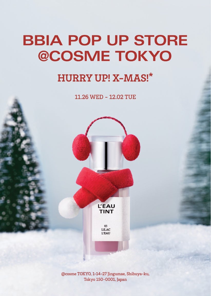 韓国コスメブランド「BBIA(ピアー)」は、2025年11月26日(水)〜12月2日(火)の期間、@cosme TOKYO2階にてクリスマスをテーマにしたPOPUPイベントを開催いたします。