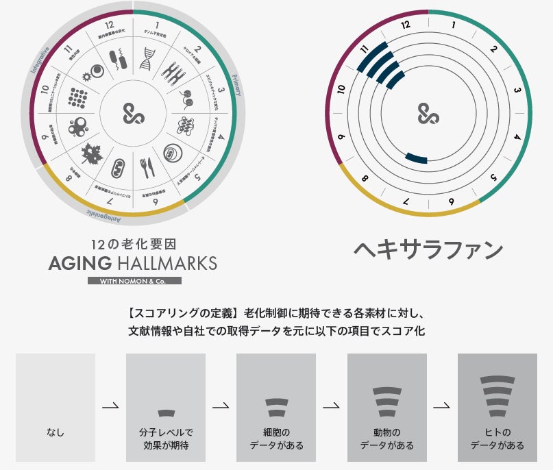 NOMON & Co.は、12の老化要因「AGING HALLMARKS」を指標として老化研究のエビデンスに基づいたソリューションを提供するヘルスケアカンパニー。ヘルスケアブランドNOMONを展開し、ニュートラシューティカル製品の開発、販売を通じて、最先端のサイエンスと日常をつなぎ、人々の可能性を拓くことを使命に、プロダクティブ・エイジングが あたり前になる社会の実現を目指します。