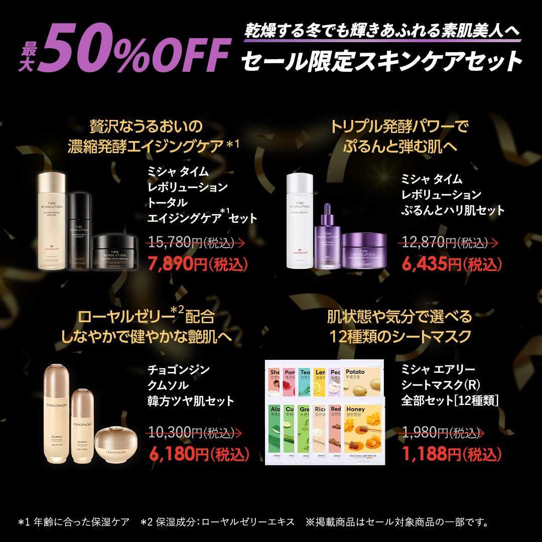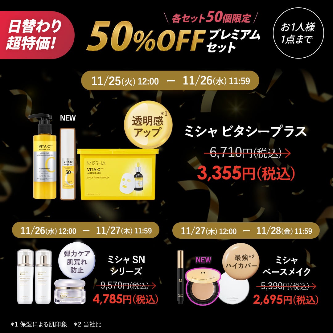 株式会社ミシャジャパン(本社:東京都港区)が運営するミシャジャパン公式オンラインショップ本店(https://www.misshajp.com)にて最大80%OFFの「ブラックフライデーセール」を2025年11月25日(火)12:00から11月28日(金)11:59まで開催いたします。