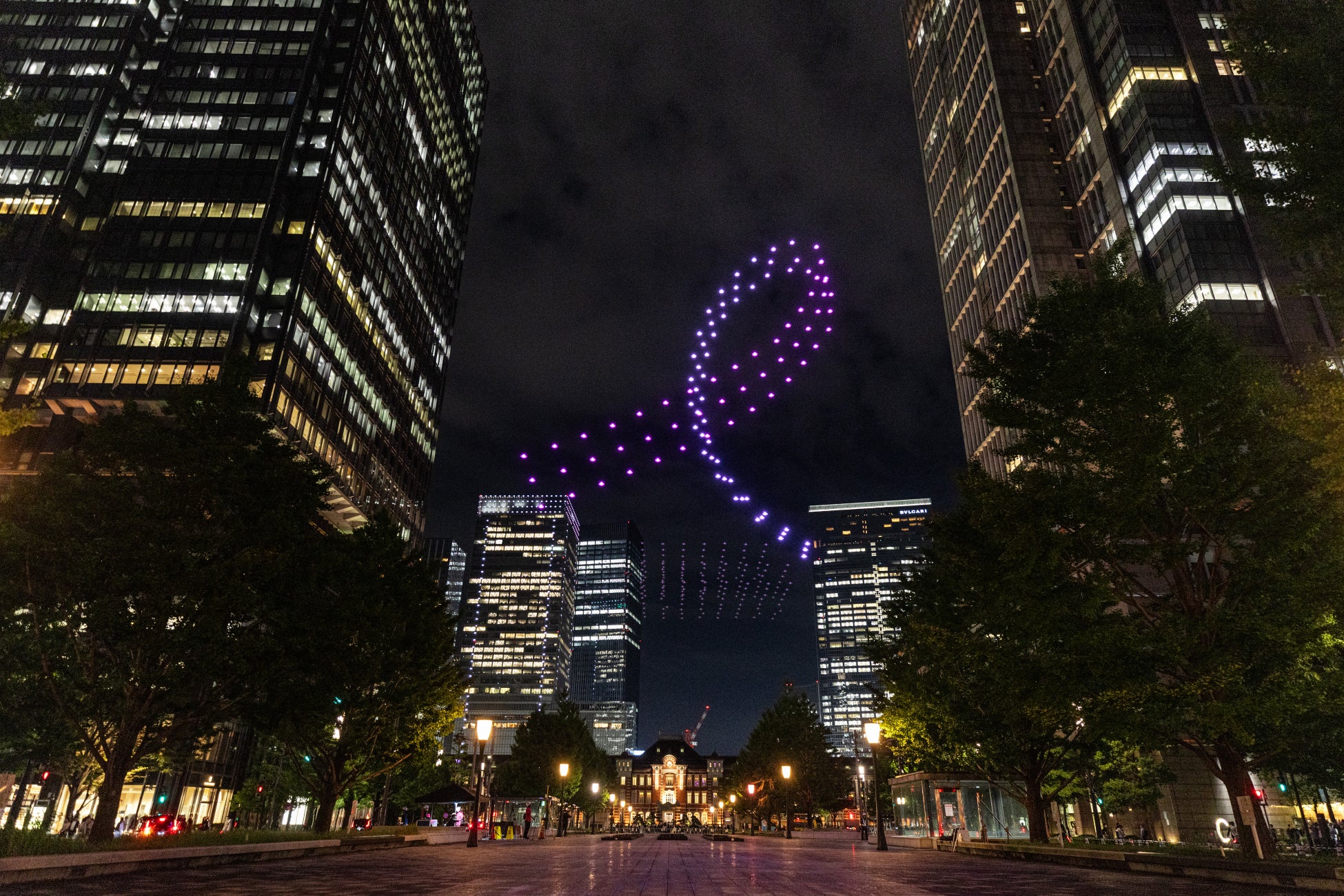 今年の10月は、東京・京都においてランドマークをピンク色に、イルミネーションとドローンショーを実施し、乳がんのない世界へのメッセージを発信しました。