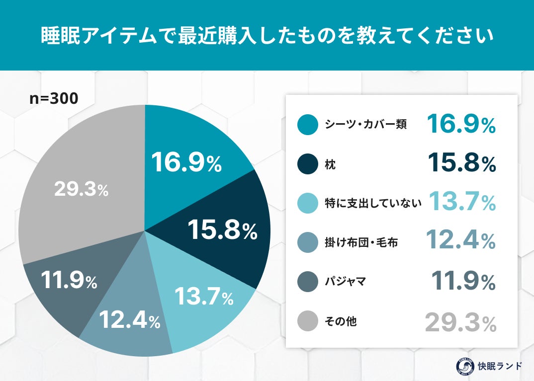 • 最近購入したものは「シーツ・カバー類(16.9%)」がトップ。“小さめの買い替え”が中心