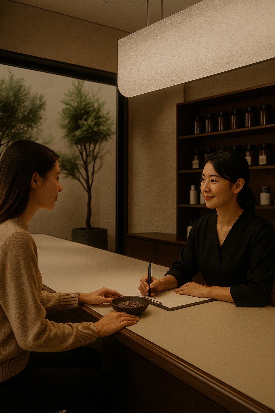 コントゥール調律師™はお客様の肌悩みをヒアリングし、お体に合う漢方やスキンケアを設計します。会員様限定のワンランク上のケアでは、予約制のカウンセリングによりお客様だけの答えを一緒に見つけます。
