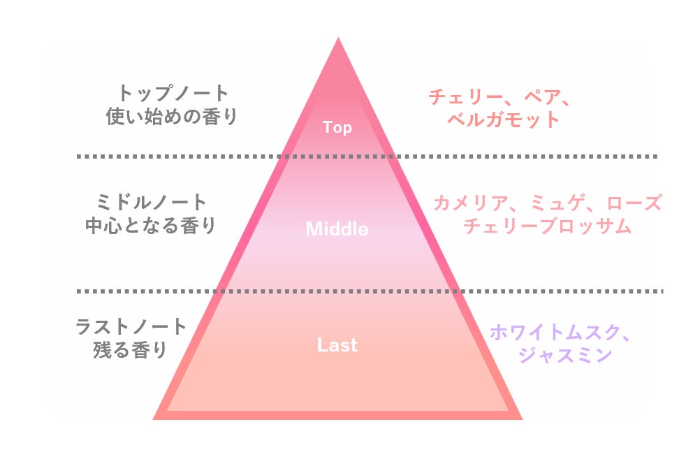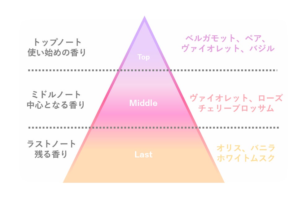 春を感じられる桜とそっと花開くスミレのような繊細でみずみずしい香りを採用。