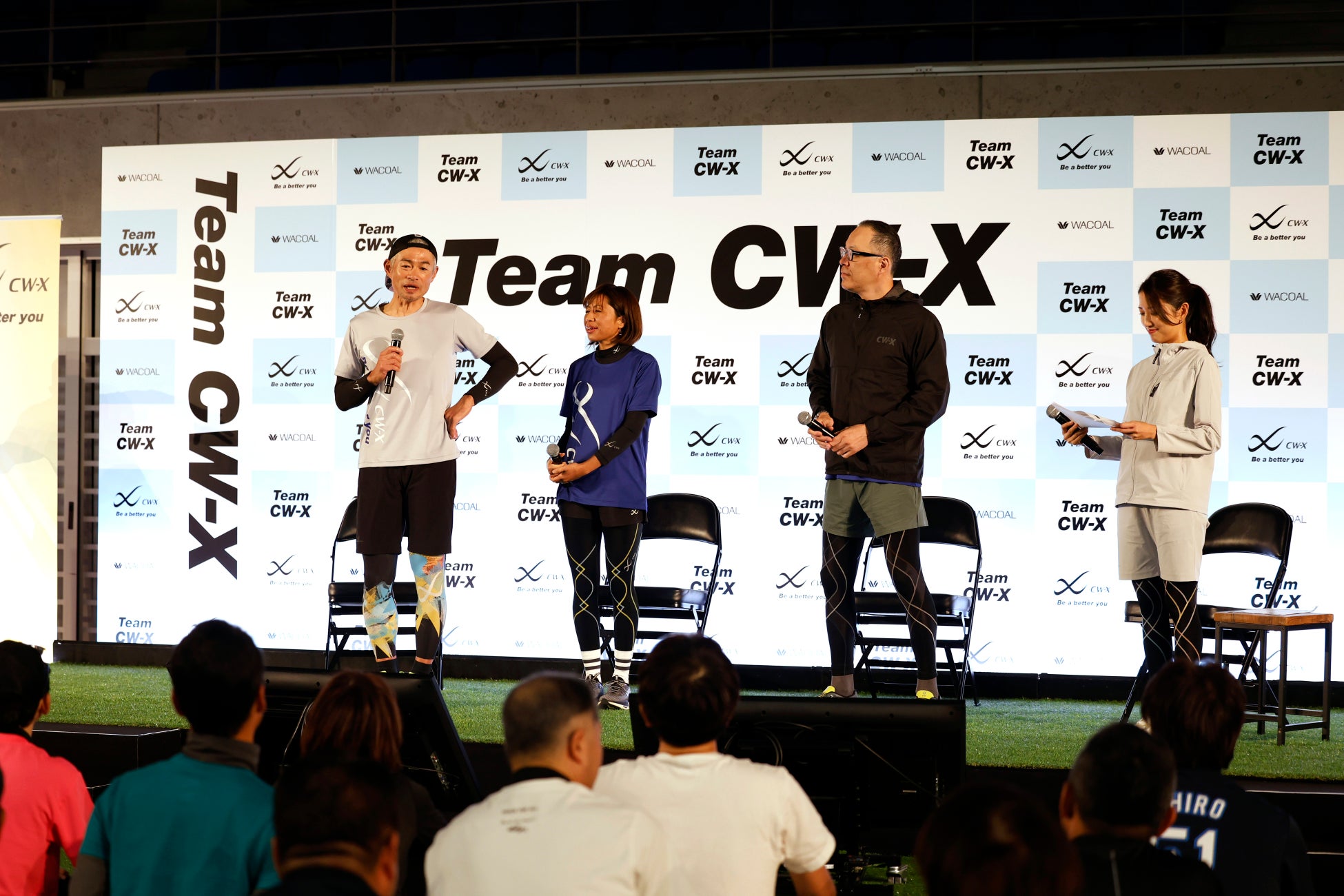 スポーツテスト終了後の第二部では「51歳からのコンディショニングを“学ぶ”」と題して、スポーツテストの趣旨や「CW-X」についての説明、トークセッションを行いました。「CW-X」ブランドマネージャーの松井孝明はイベントについて説明し「本⽇のイベントは、イチローさんが現役時代につけた背番号『51』、そして企画当時のイチローさんのご年齢にちなんで、51歳以上の⽅を対象にコンディショニングの重要性を伝えるとともに、運動への挑戦や継続を後押しすることを⽬的に企画しました。⼀般的に50代以降は、何もしないでいると体⼒や運動能⼒の⾯で持久⼒・筋⼒・パワー・柔軟性・バランスの機能は年々低下するとされていますが、これらはいつでも鍛えることができると⾔われています。私たちは、高いパフォーマンスを求めるトップアスリートから、仕事でカラダに負荷のかかる⽅など、アクティブにカラダを動かすすべての⼈のコンディションの維持・向上に寄与したいと考えています。今日は心ワクワク・ドキドキさせながら、素敵な一日にしていただきたいと思います。」と語りました。