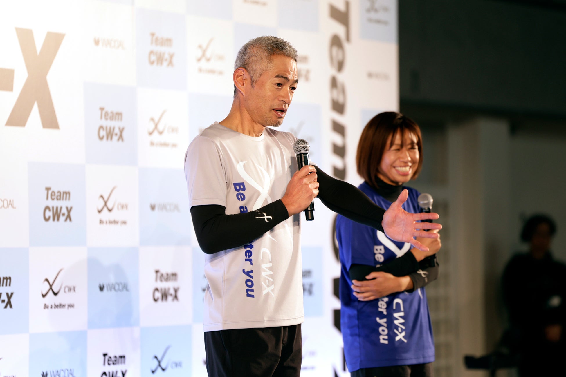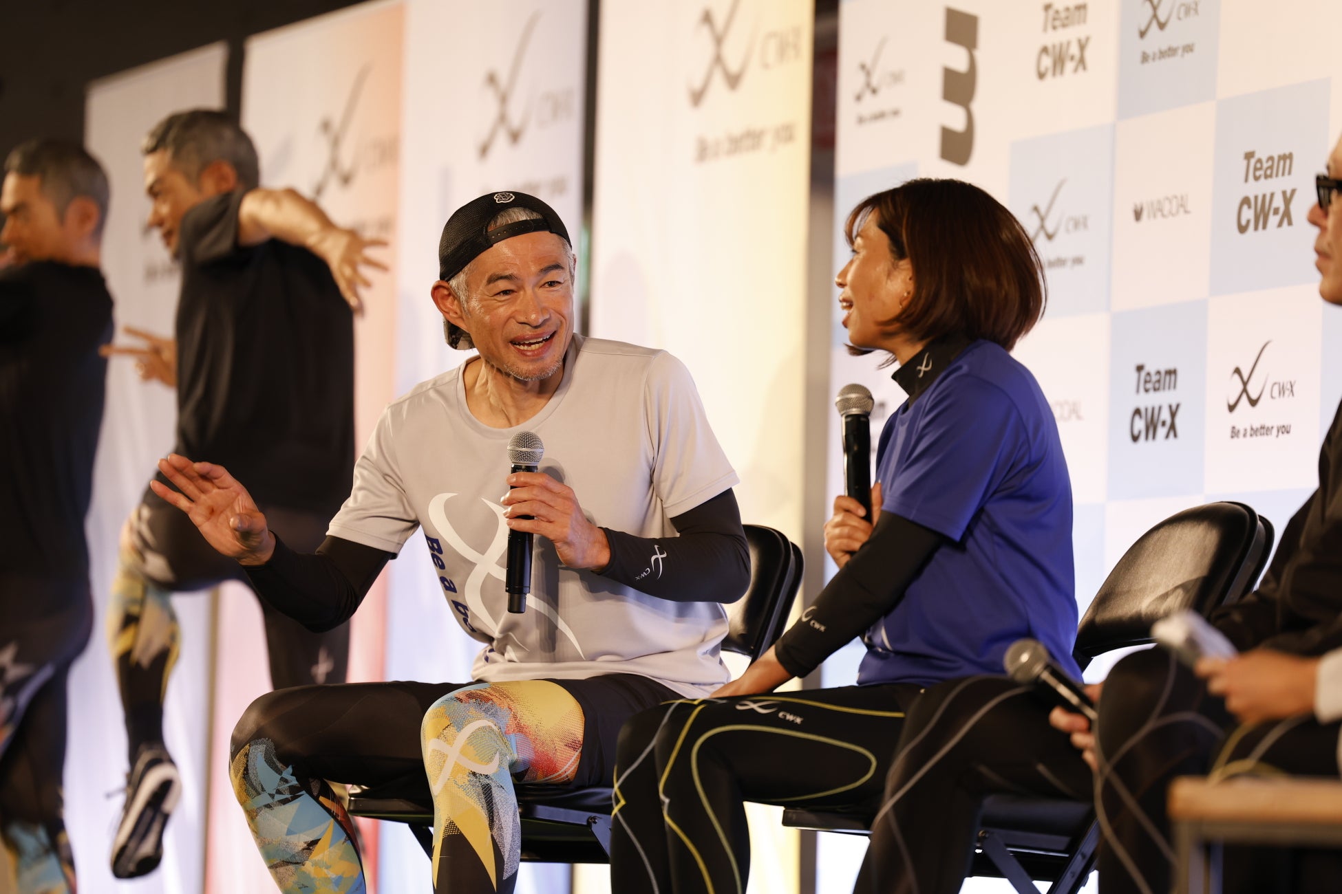 その後「Team CW-X」のキャプテンであるイチローさん、副キャプテンの福士さん、ワコール社長の川西が登場しトークセッションを行いました。まずは「自身のカラダの状態を知る大切さ」について話しました。イチローさんは「心・技・体って言葉、よく聞きますよね。でも僕は『体・心・技』の順番で大事だと思っています。心がととのっていてもカラダが元気でなければ元気でいられない。カラダが元気であることが一番大事なので、それを測るセンサーを常に敏感な状態にしておきたいなと思います。」と、カラダの状態を知ることの大切さについて語りました。これに対して川西は「私はお二人のようなアスリートではありませんが、カラダの状態は会議などでのパフォーマンスにも影響があるように感じます。」とコメントしました。