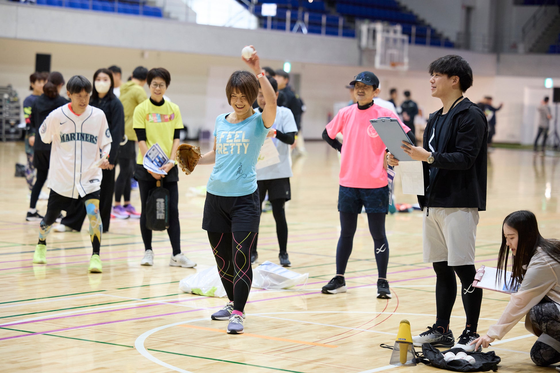 第一部では、ワコール人間科学研究開発センターが独自に開発したスポーツテストを実施。スポーツテストは、筋力・柔軟性・バランス能力の運動機能全般を計測する「運動機能テスト」、股関節の安定性・可動性を計測する「ファンクショナルリーチテスト」、肩甲骨の可動性を計測する「ショルダーモビリティテスト」、全身運動のボール投げによる腕機能・動的能力を計測する「スローイングテスト(コントロール能力)」の4種目を行いました。