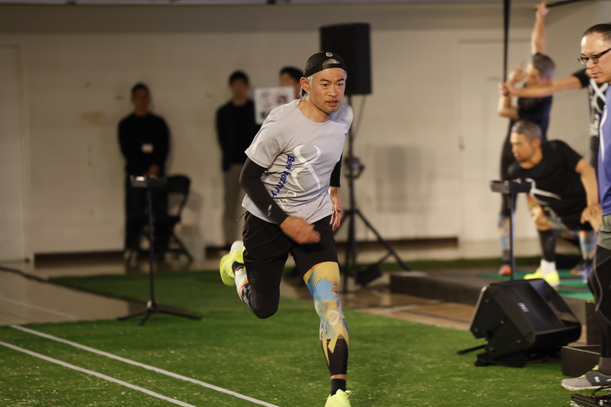 続いて、イチローさん自らがお手本となり、走る際の手の振り方を実演しました。力強く、しなやかな腕の動きを見せながらポイントを分かりやすく解説し、参加者の皆さんがその動きを真似しながら実際に走ってみる時間も設けられました。参加者はイチローさんのアドバイスを意識し、手の振り方を工夫しながら真剣な表情で挑戦し、その様子をイチローさんが温かく見守る姿も印象的でした。さらに、イチローさんは現役時代を彷彿とさせるスピード感としなやかさを兼ね備えた走りを披露しました。参加者はその見事なフォームに驚きと歓声をあげ、食い入るようにイチローさんの走りを見つめ、満足そうな表情でトレーニングが終了となりました。