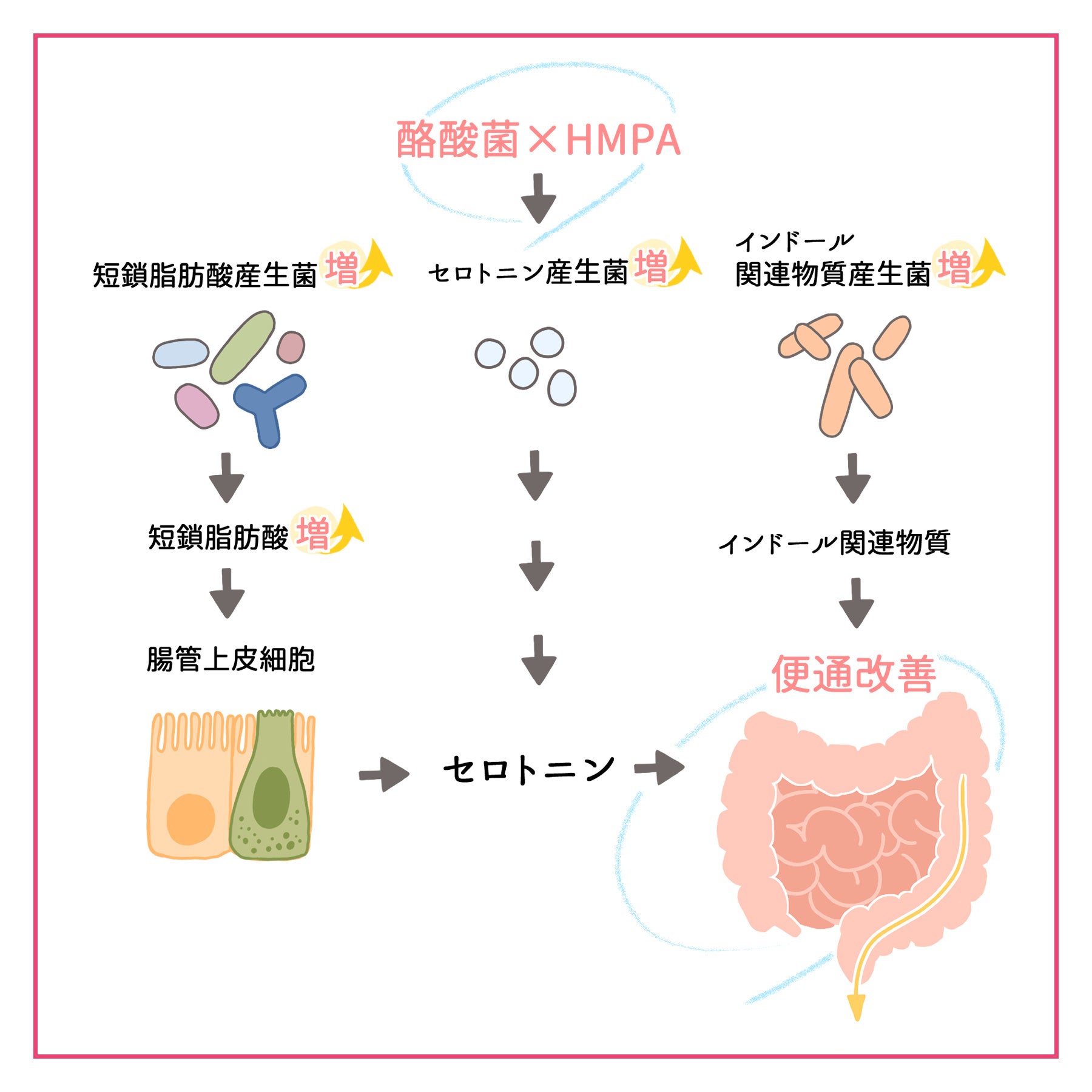 ■酪酸菌とHMPAの摂取による便通改善のメカニズムイメージ