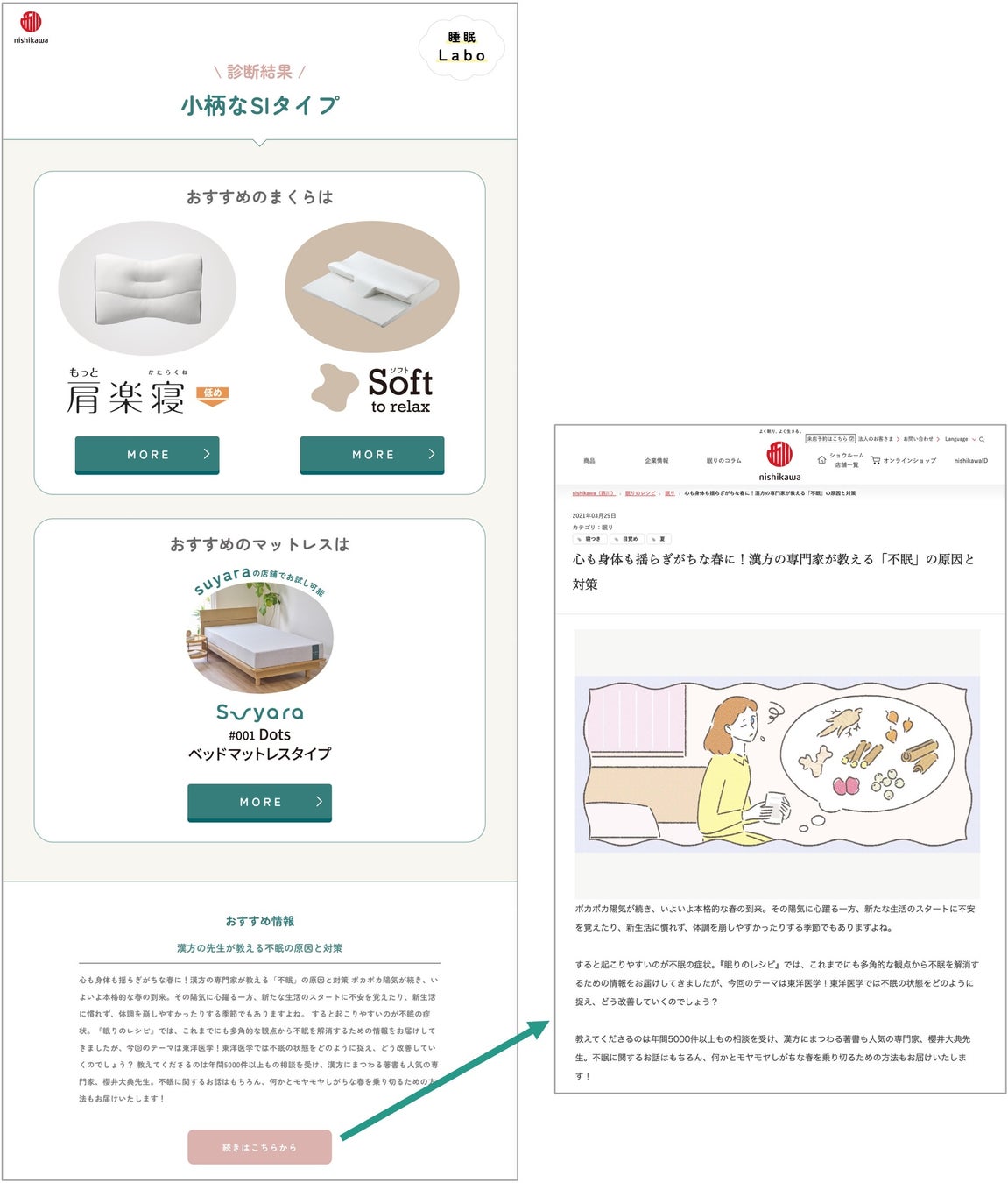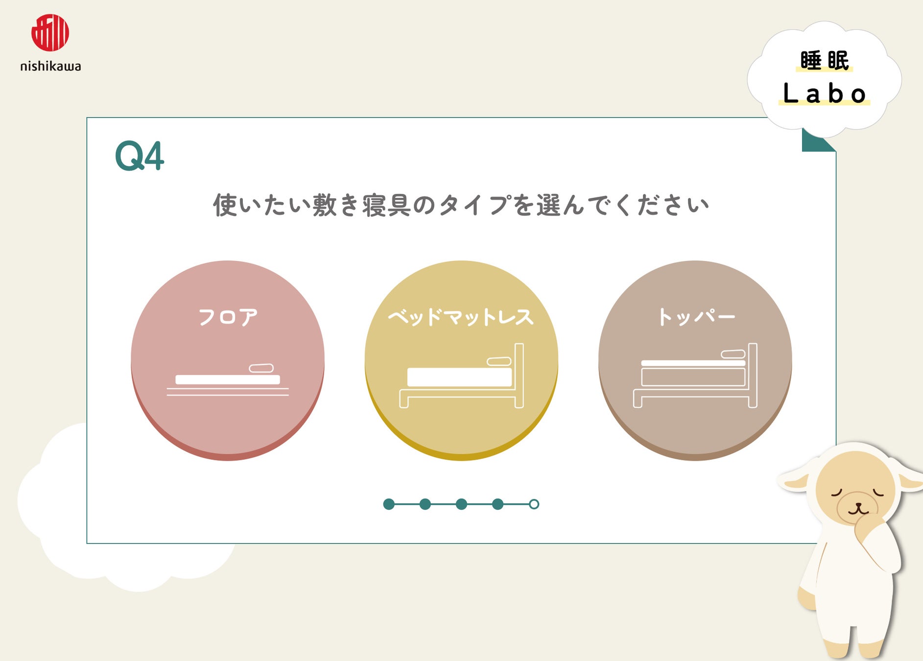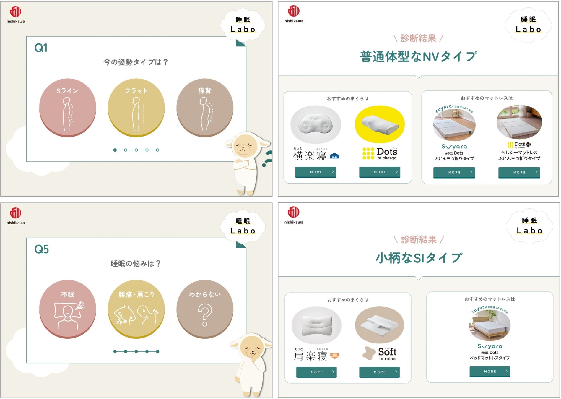 nishikawaの睡眠と寝具開発の知見・データを活用し、おすすめ寝具をクイック判定!眠りのお悩み解決のヒントも紹介