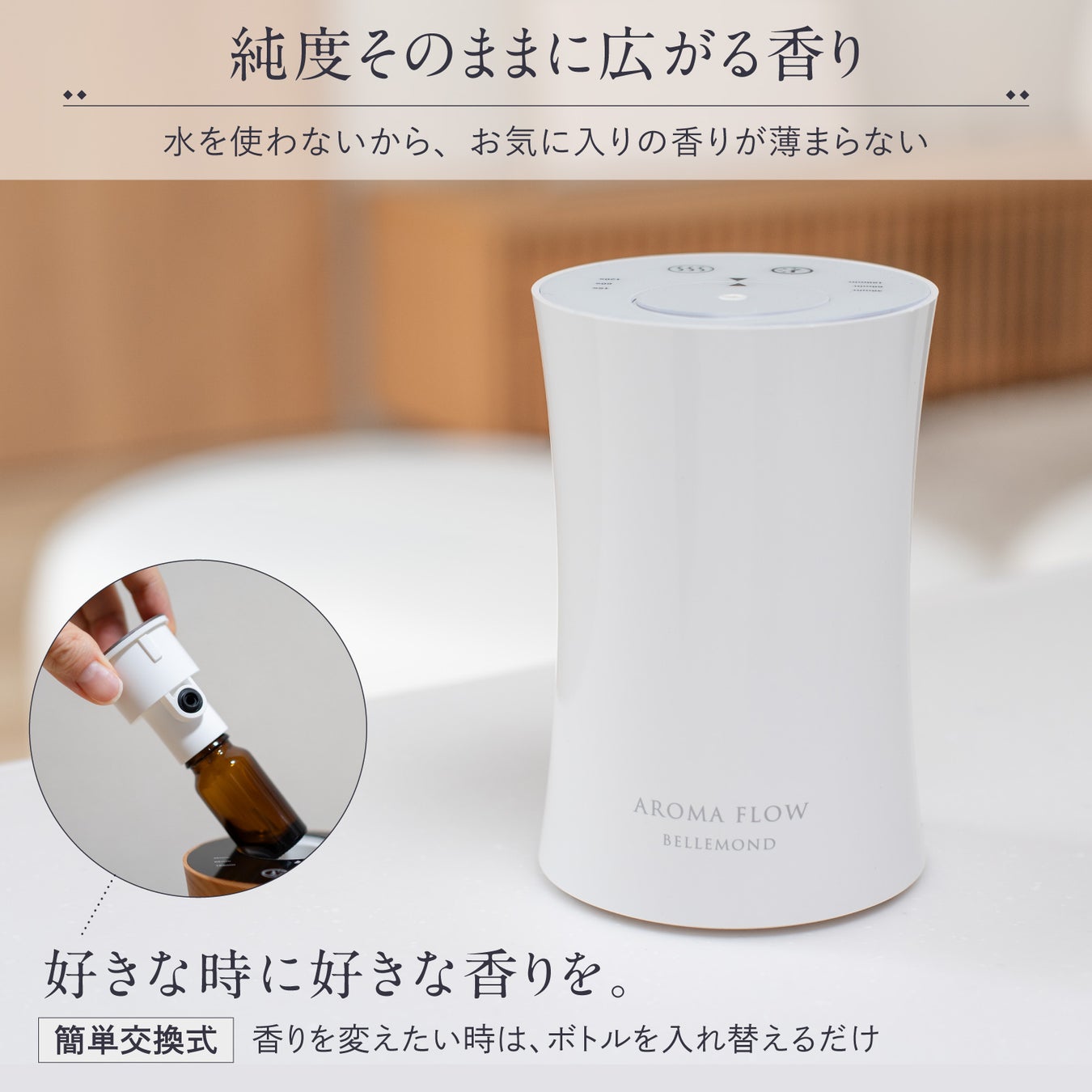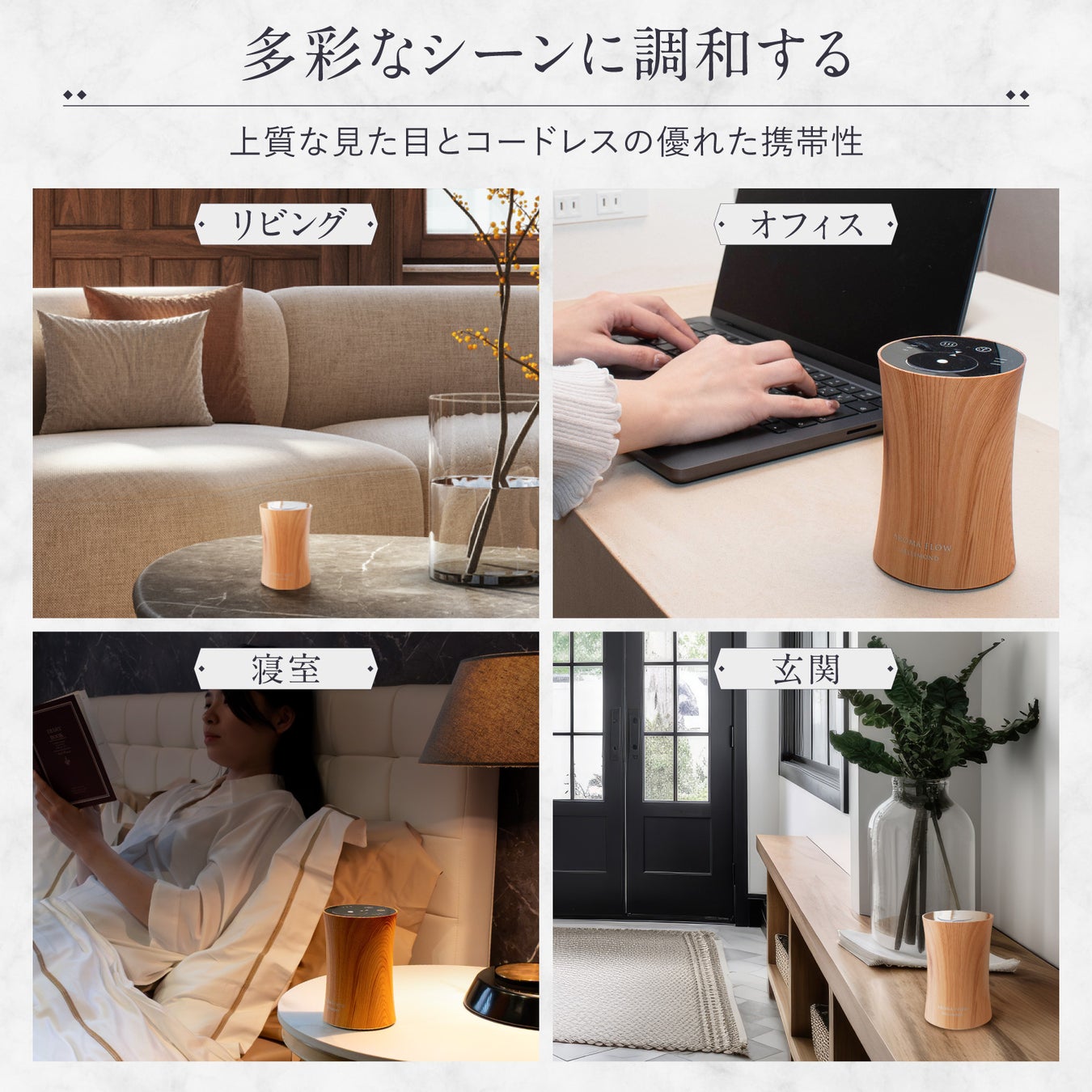 水を使わず、エッセンシャルオイルの純粋な香りをそのままお部屋に広げることができます。水を頻繁に補充する手間がなく、手軽に長時間使用できるのが特徴です。
