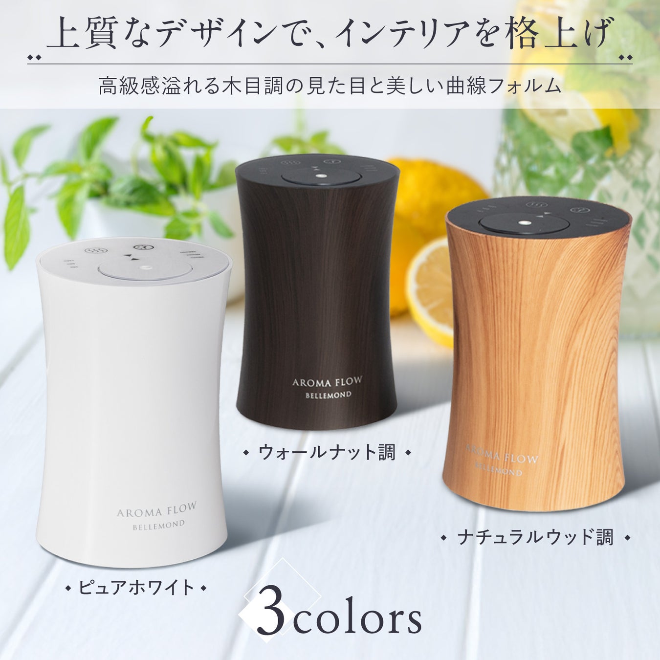 「AROMA FLOW (アロマフロー)」は、ウォールナット調とナチュラルウッド調の2色を取り揃え、美しい木目調のデザインが特徴です。優雅なくびれたフォルムが空間に高級感と柔らかさを与え、インテリアに自然に溶け込みます。