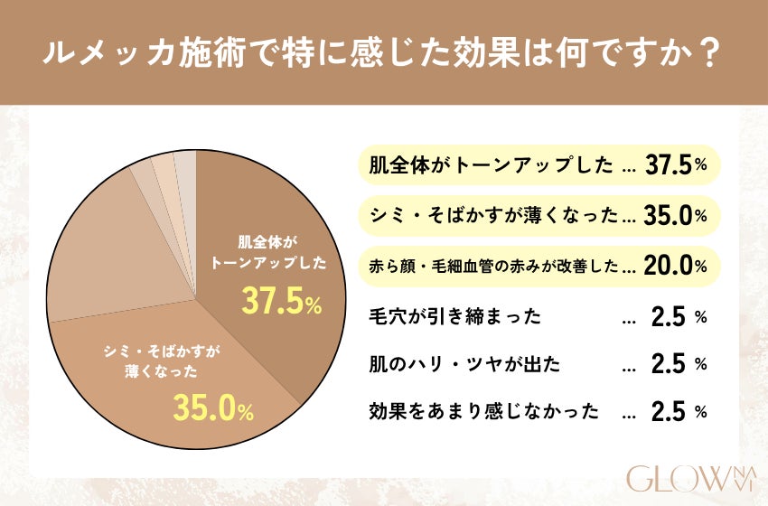 ルメッカの施術後の効果として「肌トーンがアップした」と回答した人が最も多い
