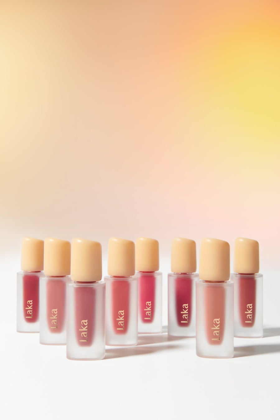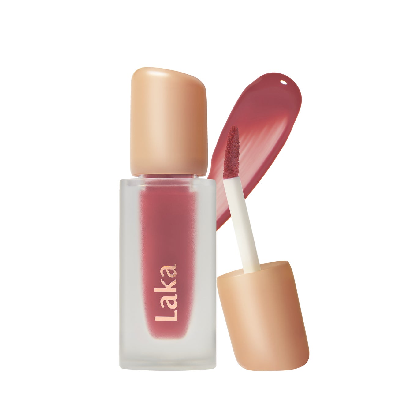 唇に触れた瞬間、透明な光沢感が広がり、ふっくらとした唇に導く Lakaの代表リップ