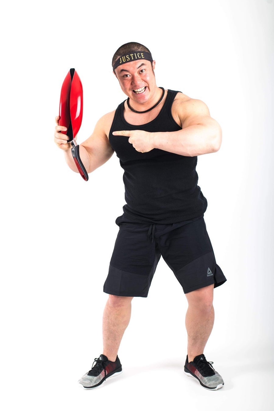 元陸上自衛隊狙撃手。現在も予備自衛官として招集待機態勢に入っている。タレントや芸人として数多くのメディアに出演している。フライパン曲げや人力で軽自動車解体という持ちネタがある。芸能活動の側ら、日々のウエイトトレーニングを欠かさず行っておりベンチプレスは200キロを挙げる。また実業面においては筋肉を通じた交友関係を生かして、筋肉キャスティング(株式会社ジャスティ)を行ったり、プロテインマイスターの資格(一般社団法人日本プロテイン協会)を生かして、ジムやサプリメントの開発にも携わるなど、多岐にわたって活躍中。筋肉コミュニケーション研究家として、『筋肉で笑顔を』をモットーに日々活動している。