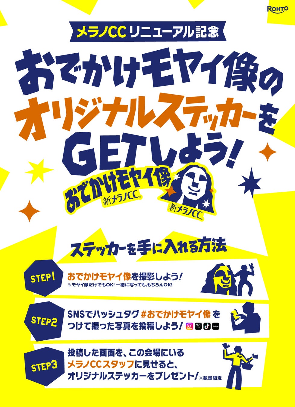 やあ、モヤイだよ!肌の調子がよくなって、うれしくなってちょっとだけおでかけ中!新島っていう島から海を渡って、渋谷のみんなと過ごして半世紀。生まれてからず~っと外に出っぱなしだから肌のことは、いつも気にしてて…。何かいいケア方法ないかなってモヤモヤしてたんだけど、メラノCCっていいね!肌に自信が持ってるといろんな冒険できちゃうし~!