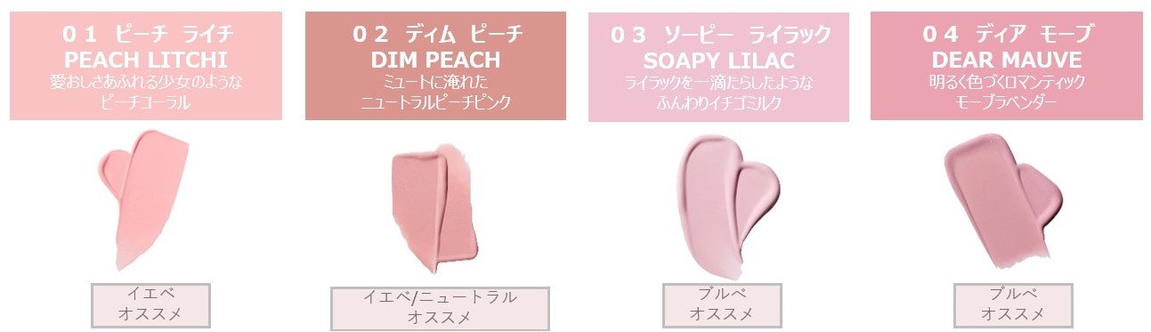 頬にのせた瞬間、ふんわり“ぽよん”と広がるやさしいカラー。まるで恋したときのように、じゅんわり内側からにじむような血色感を与えるリキッドタイプのブラッシャーで、程よいツヤ感のあるセミグロウに仕上がります。軽やかでみずみずしいテクスチャーが肌にぴたっと密着し、ムラのない美しい発色をキープ。白みピンクやラベンダーモーブなどのパステルカラーが透明感と立体感をプラスし、思わず触れたくなるようなふんわり頬を演出します。ふんわりとした透け感のある発色から、内側からぽわんとにじむような血色感まで。どんな肌トーンの方にもなじみやすい絶妙なカラーで、思いのままに楽しめます。ベースメイクの上からもなめらかに伸びるイージーブレンディング設計で、明るく清純な印象を演出します。