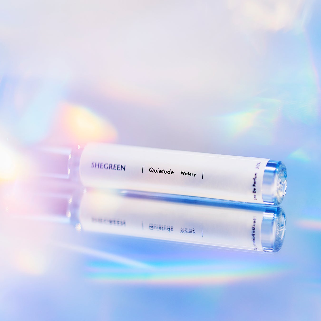SHEGREENの香りは、20の感性から成るフレグランスアート。単体ではなく、他の香りとの共鳴=レイヤリングによって完成します。20の香りが、感情の地図を描きます。