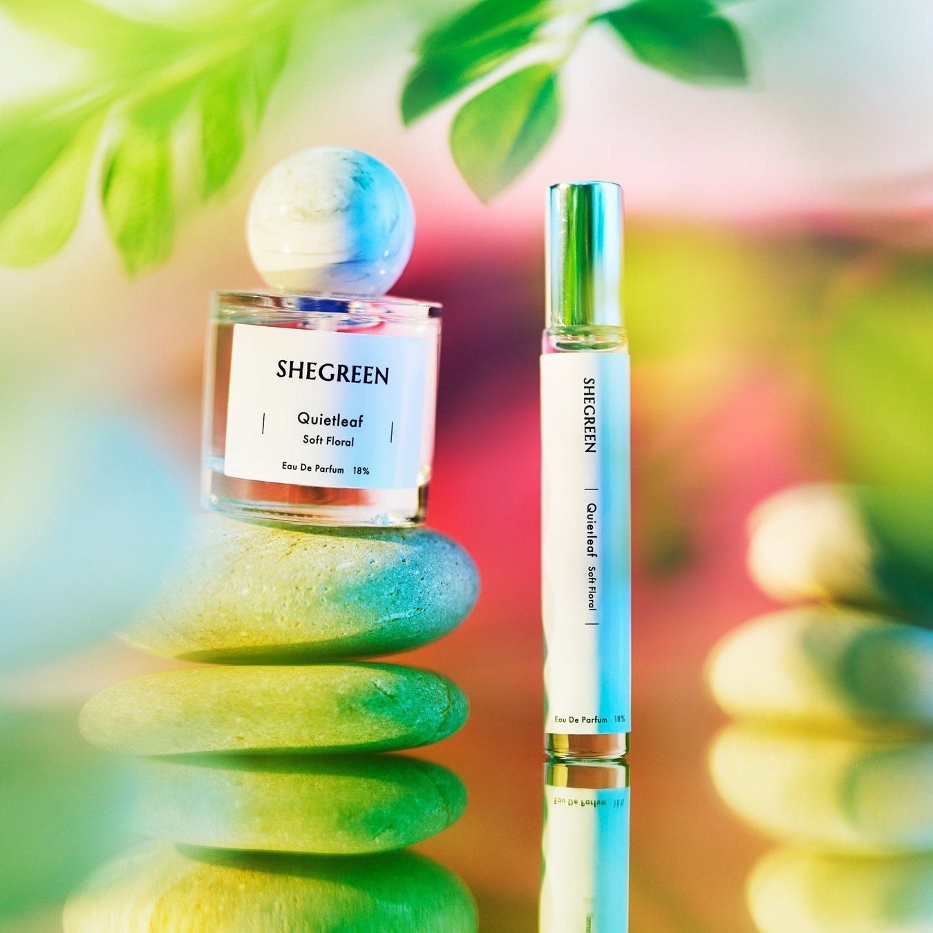 SHEGREENを象徴する3種の香りを体験できる数量限定コレクション。香りを切り替えるたびに、心は自然とニュートラルに戻り、思考は澄み、感情はやわらぐ。1日のリズムを香りでデザインするというコンセプトです。