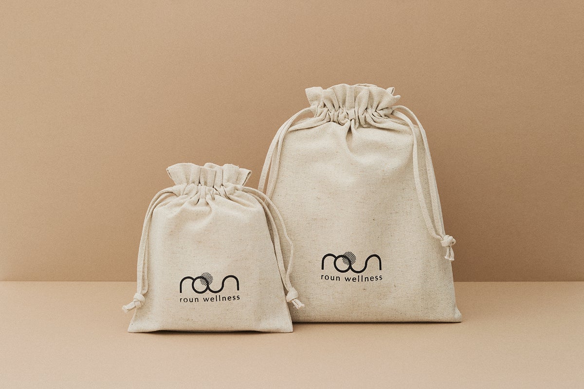 ポーチとしてもお使いいただける、人気のコットンリネン巾着。Sは小さいサイズのアイテム、Mはマッサージオイルやスキンケアアイテムなどが入るサイズです。