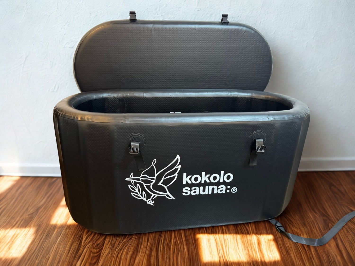 空気でふくらませて使えるゴム製水桶と、最低水温3℃まで冷却可能なチラー(冷却装置)を組み合わせた水風呂「Hagoromo1n」は、2025年10月に発売した新モデル。