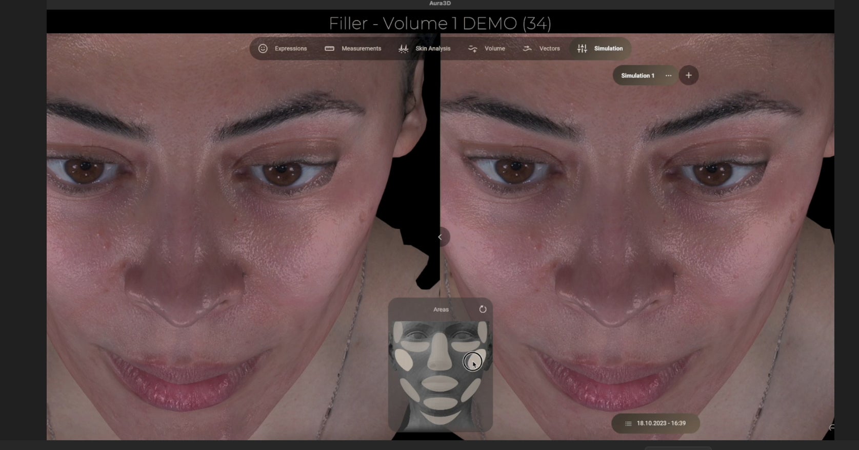 こめかみ・頬・目の下・顎下などの各部位で、施術前に仕上がりイメージを立体的に確認できるため、カウンセリング時の説明がより明確になり、患者様が安心して施術を選択できる環境を実現します。