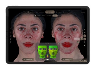 シワ、キメ、赤い部分、茶色いシミ、 毛穴のスコアリングを含む包括的な肌分析が可能