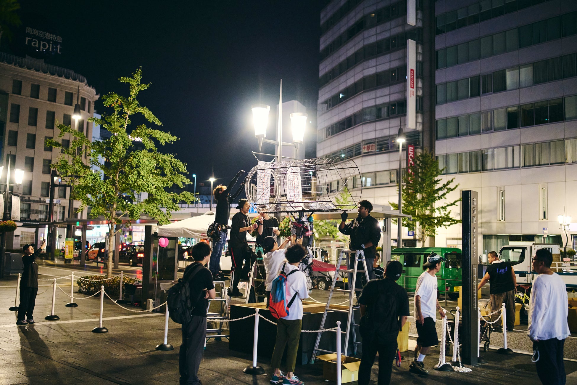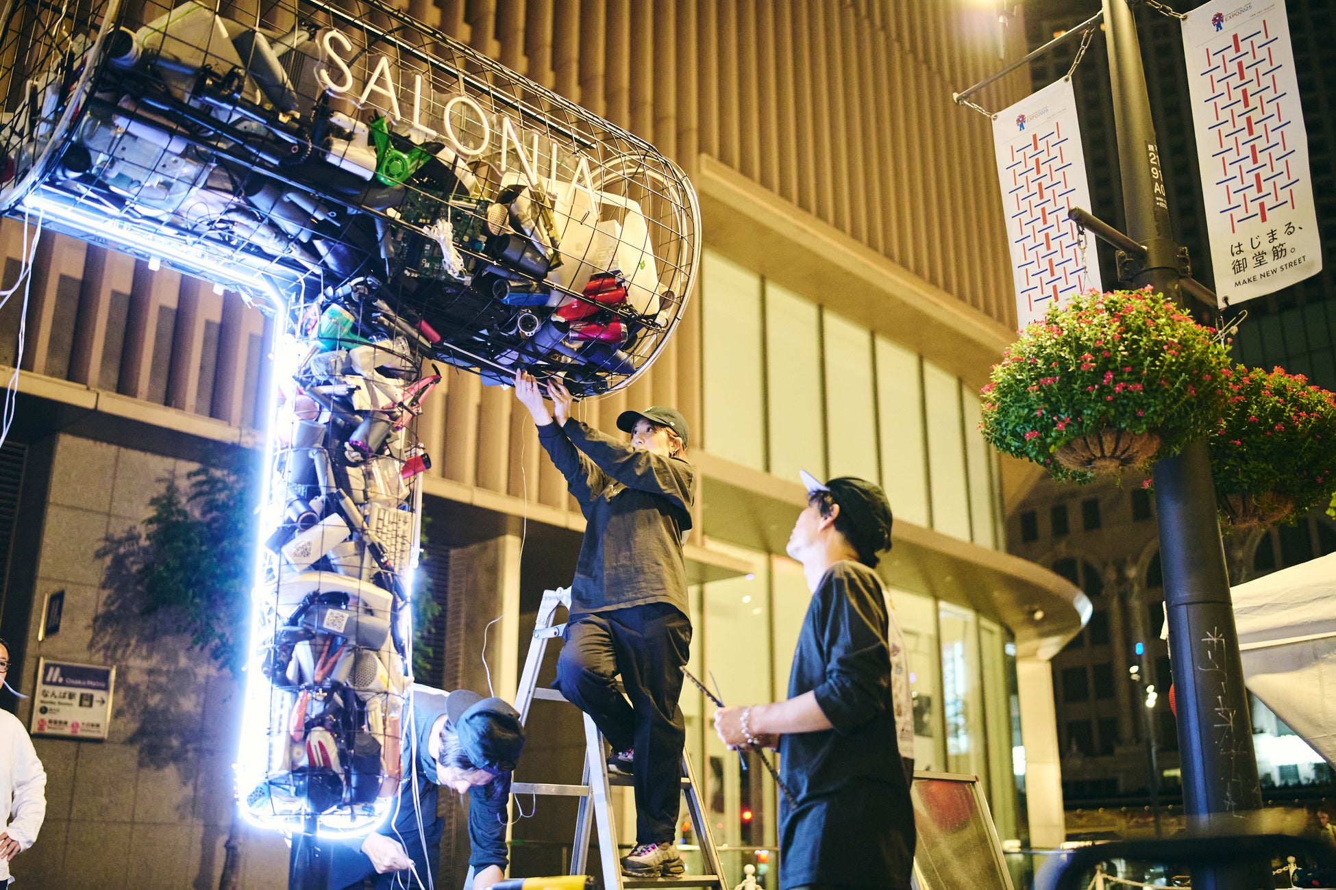 深夜の設置時、大阪・御堂筋の難波エリアはまだまだ賑やかな様子で、通行する人たちから「ドライヤーの形だ!」「SALONIA だ!」というつぶやきも聞かれ、身近なブランドとして支持を得ていることがうかがえました。