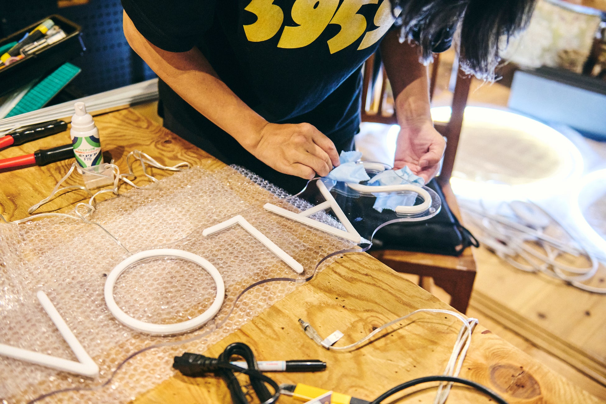 ネオンサインはカラフルに発色するものが多いですが、シンプルで洗練されたデザインの SALONIA らしさを表現するため、美しくクリアに発色する白を採用しました。