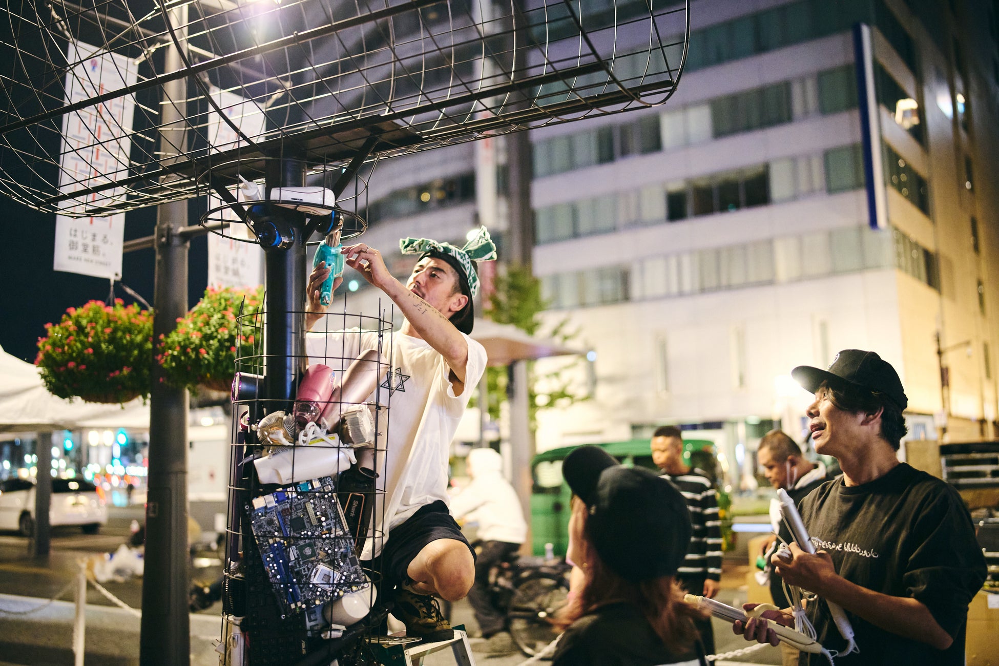 2025 年 9 月 23 日(火)から 9 月 28 日(日)までの設置期間中、多くの街ゆく人たちの目に留まりました。オブジェを撮影したり、中に入った小型家電をじっくり見たり、散りばめられた QR コードを読み取ったり「色んな小型家電でドライヤーを作る…、リサイクルってことかぁ」「家に眠っているものがあるから、リサイクルしよ!」と、話す人も見受けられました。
