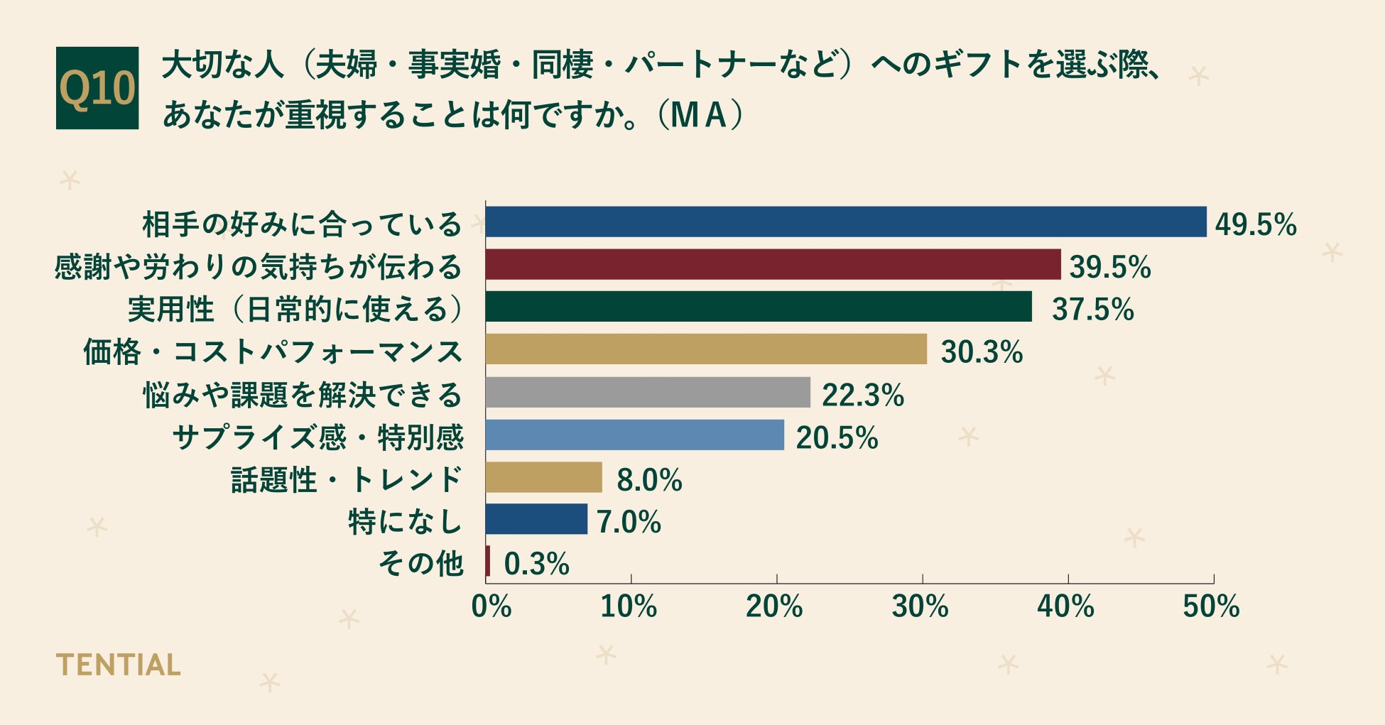 Q10:大切な人へのギフトを選ぶ際、あなたが重視することは何ですか。