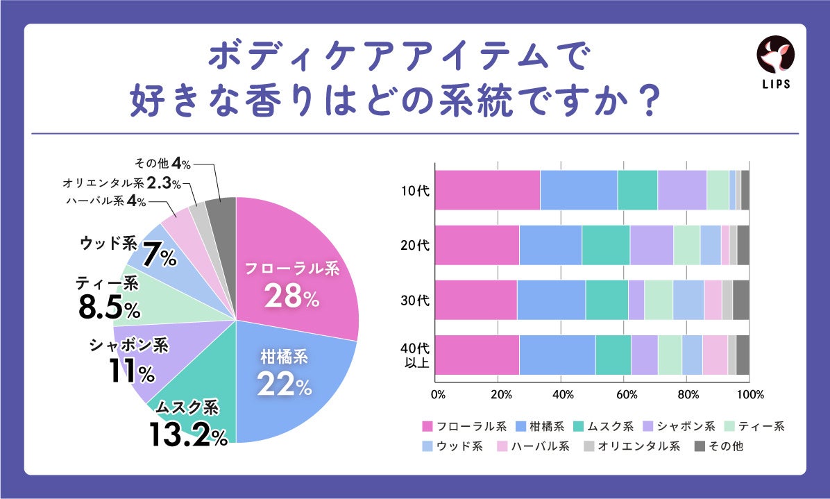 また、30代〜は、「ハーバル系」などナチュラルな香りを好む人の割合が増えているのが特徴として現れていました。
