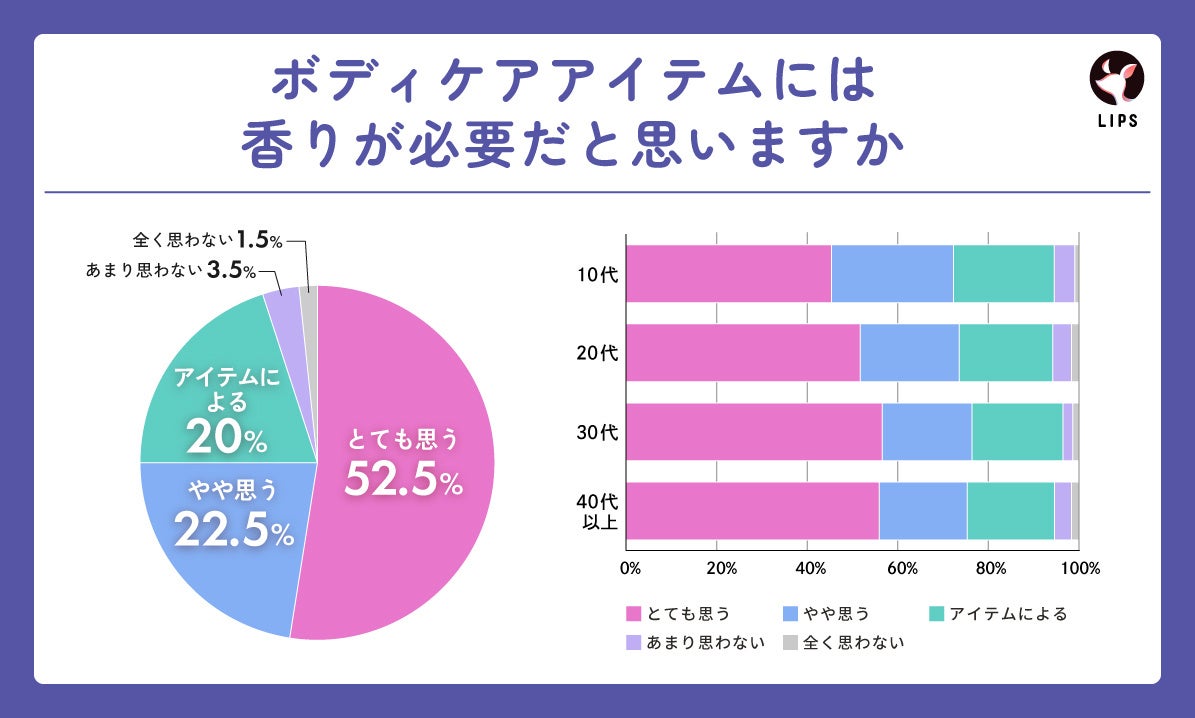 ボディケアアイテムに対しては、多くの人が「香りが必要」と感じていることがわかります。