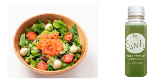 「たんぱく質の供給源となるサーモンやチーズを使用し、彩り豊かな豆の食べ応えも楽しめます。ケールや小松菜などのグリーン野菜とフルーツを「コールドプレスジュース」でプラスし、より贅沢に。見た目も味わいも華やかな、満足感のあるセットです。」