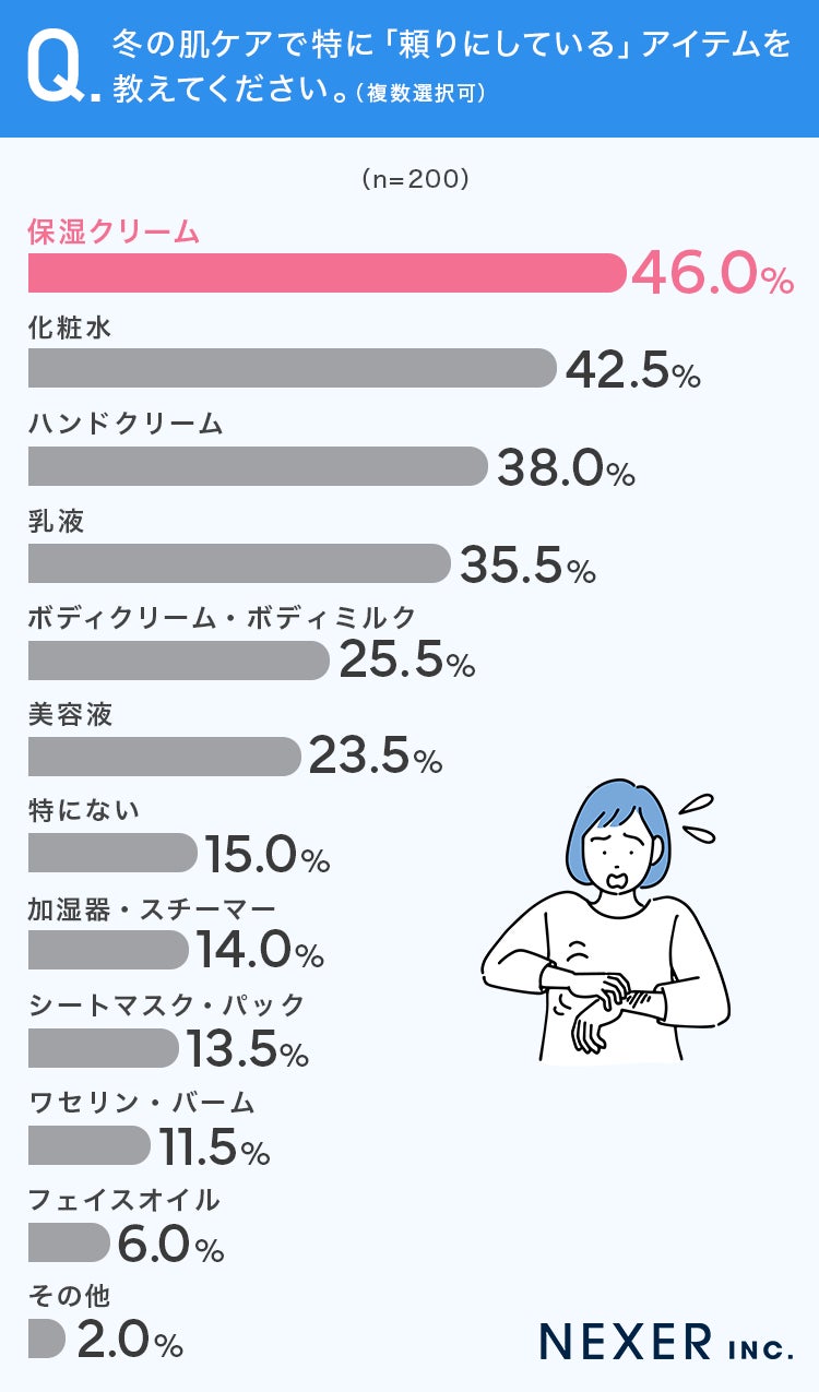 さらに、冬の肌ケアで特に「頼りにしている」アイテムを聞いてみました。