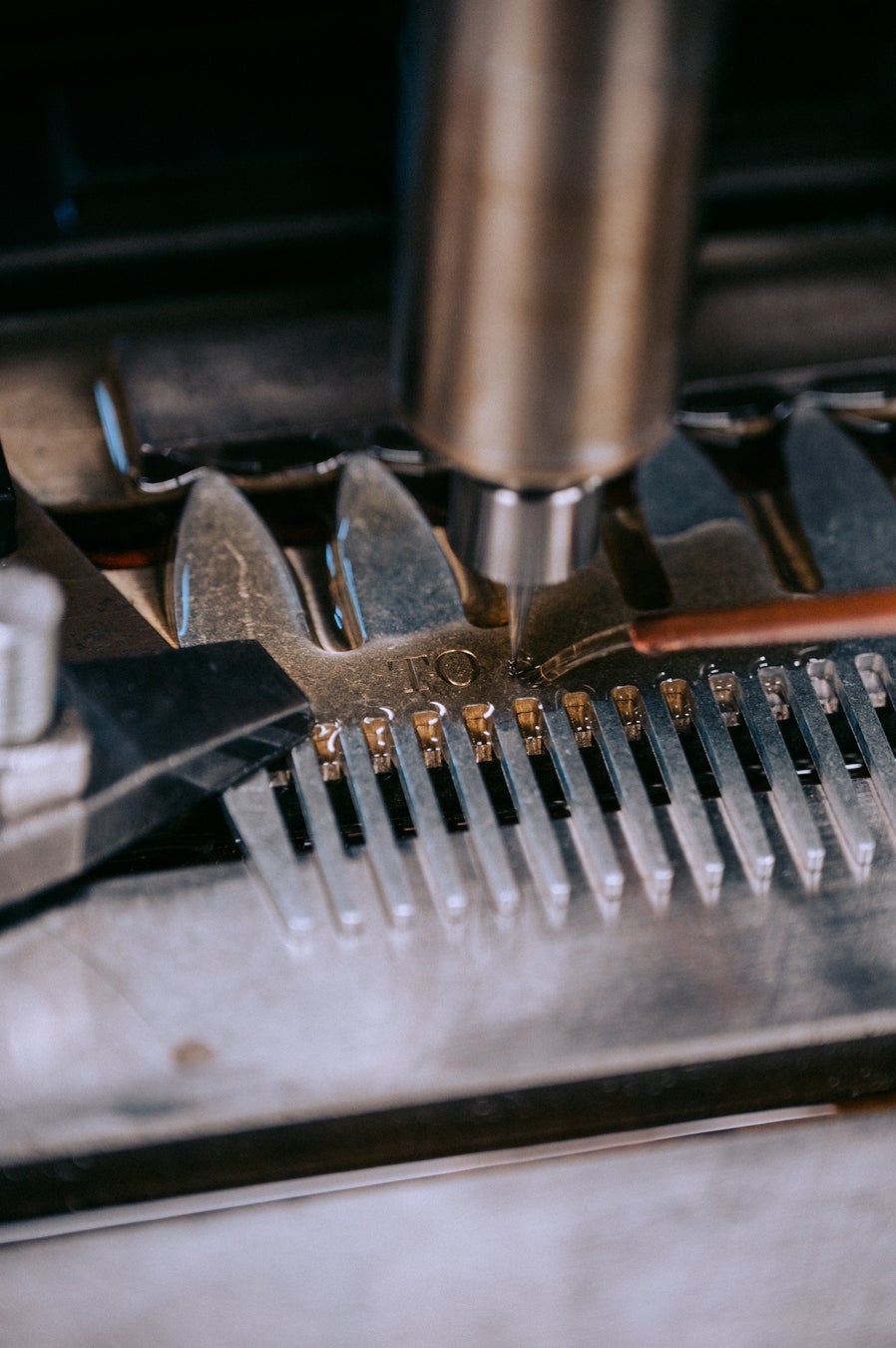 製造は長野県岡谷市で、加工・アルマイト・彫刻・色入れまで一貫生産。仕上げは職人が一本ずつ専用の針で色を入れます。量産では再現できないクラフト感と温もりを持ち、同じものが一つとして存在しない特別な一本に仕上がります。日本の「ものづくり」支える中小企業の技術と人の手による仕上げが融合した、新時代のコームです。