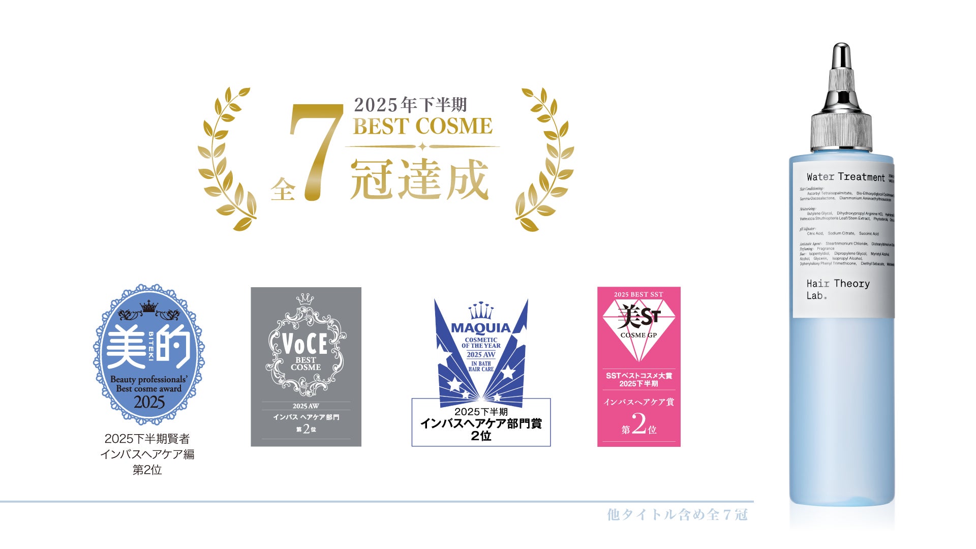 専門研究機関と共同研究を行うヘアケアブランド「Hair Theory Lab®」が発売した<ヘアセオリーラボ セラムイン ウォータートリートメント>が多数メディアにてベストコスメを受賞いたしました。