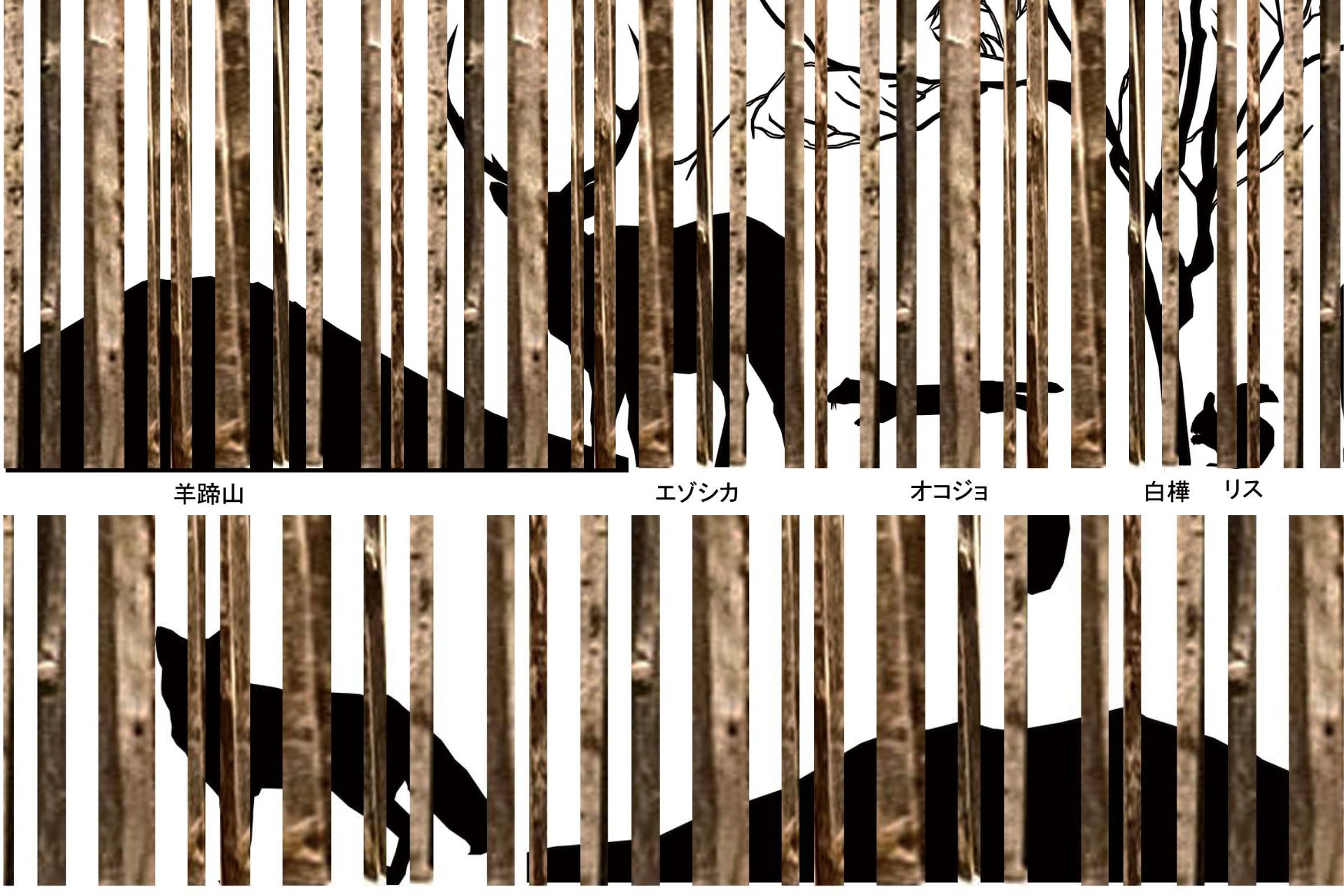 北海道・ニセコを代表する動植物が浮かび上がる大自然を感じるサウナ。北海道の大自然を木々の隙間から覗いているような内装。北海道の森をサウナに。天井に広がる、白樺ヴィヒタの贅沢。